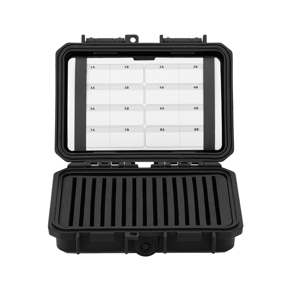 Holds up to 15 pieces M.2 2280/ 2260/ 2242/ 2230 SSDs;High-impact PP plastic material exterior, durable, and effectively bears the weight of a full SSDs;O-ring seal ensures a dry and safely protected inside;Two ergonomic design latches offer easy opening and closing;Customized-cut EVA foam interior provides superior shock absorption and ultimate protection for SSDs, ensuring optimal organization and easy accessibility;Frosted surface provides you with a comfortable hand-feel;Adaptable for locks;