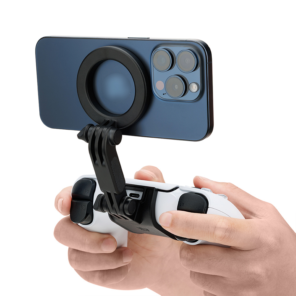 Connects phone and controller simultaneously, eliminating the need for a separate stand - integrated design for ultimate convenience;Built-in magnetic plate securely holds phones with magnetic functionality like iPhone 17/16/15, etc;Includes metal adapter ring for compatibility with non-magnetic phones;Magnetic plate features scratch-proof silicone padding to protect device surfaces;Constructed with high-strength ABS material - durable yet lightweight;Quick tool-free installation - snaps on inst